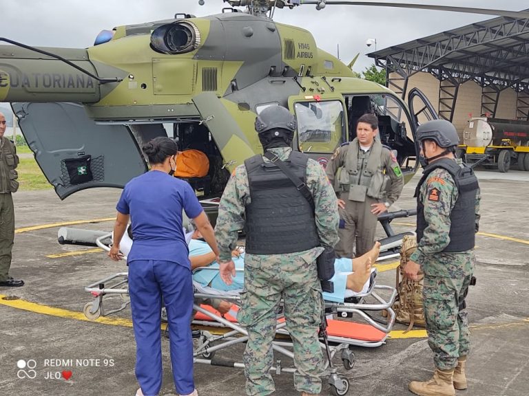 El personal FAE, en el equipo de vuelo H-145 del Ala de Combate Nro. 21 realizó una evacuación aeromédica desde Esmeraldas hacia Guayaquil. El ciudadano es perteneciente a las Fuerzas ...