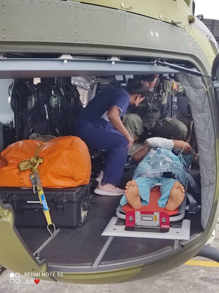 El personal FAE, en el equipo de vuelo H-145 del Ala de Combate Nro. 21 realizó una evacuación aeromédica desde Esmeraldas hacia Guayaquil. El ciudadano es perteneciente a las Fuerzas Armadas y fue trasladado con una herida por impacto de arma de fuego ocurrido en un operativo de seguridad durante un enfrentamiento con la delincuencia organizada.