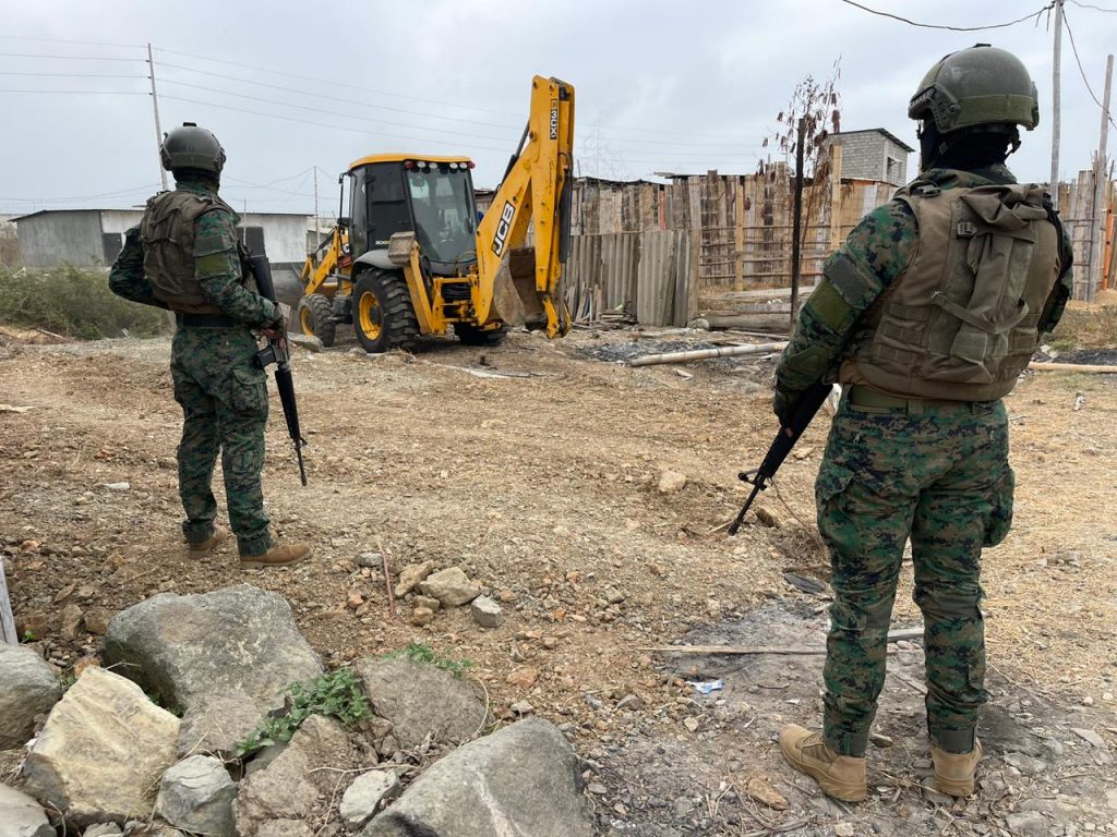 Personal de las Fuerzas Armadas del Ecuador y la Policía Nacional llevaron a cabo operaciones de seguridad en el cantón Durán para apoyar el desalojo de asentamientos irregulares.