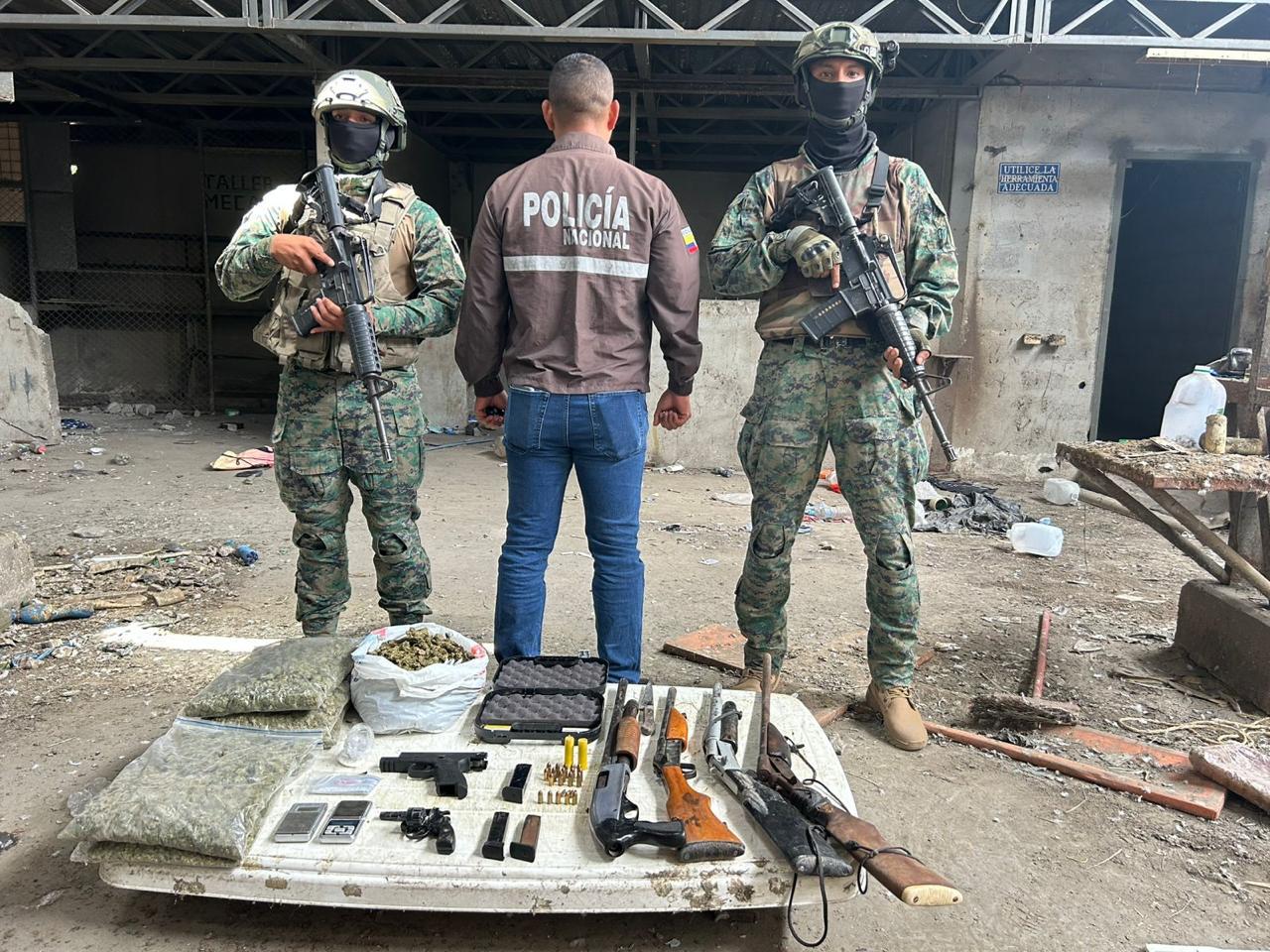 Las Fuerzas Armadas del Ecuador, en el marco de operaciones militares tipo CAMEX y con apoyo de inteligencia militar, llevaron a cabo un allanamiento en un inmueble ubicado en el sector Los Sauces, en el cantón Manta. En el operativo, el personal militar logró incautar un importante arsenal y sustancias sujetas a fiscalización.
