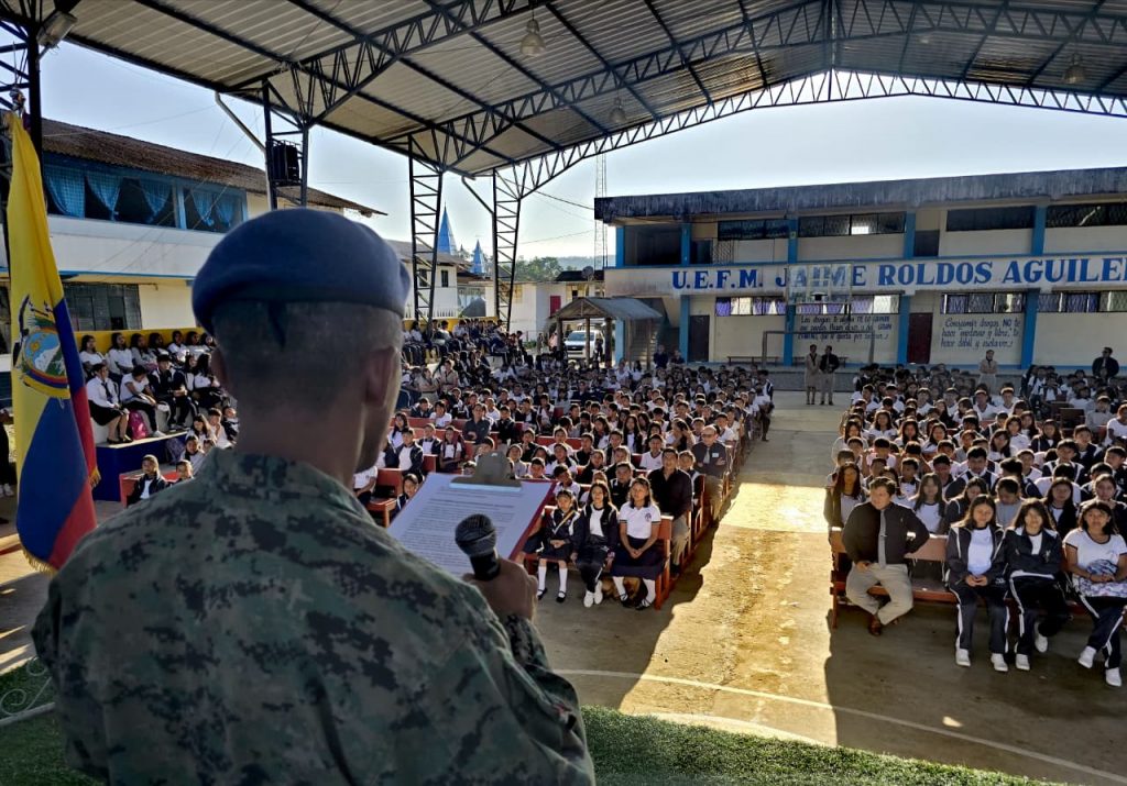 Cotundo, Napo. Con el propósito de fortalecer el civismo en la comunidad archidonense, la Fuerza Aérea Ecuatoriana (FAE) ofreció una conferencia en la Unidad Educativa Fiscomisional Jaime Roldós Aguilera de la parroquia Cotundo, con el tema “26 de Septiembre: Día de la Bandera Nacional”.