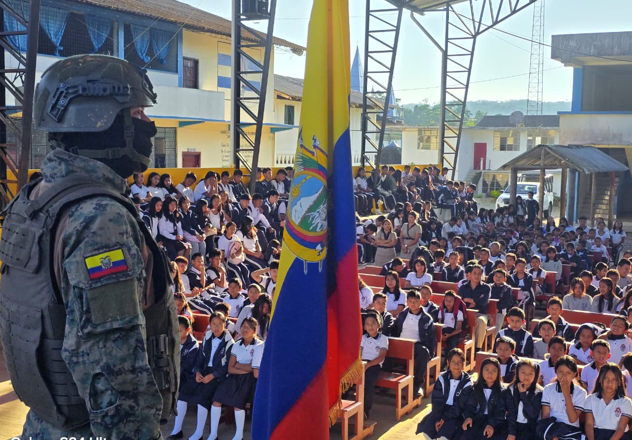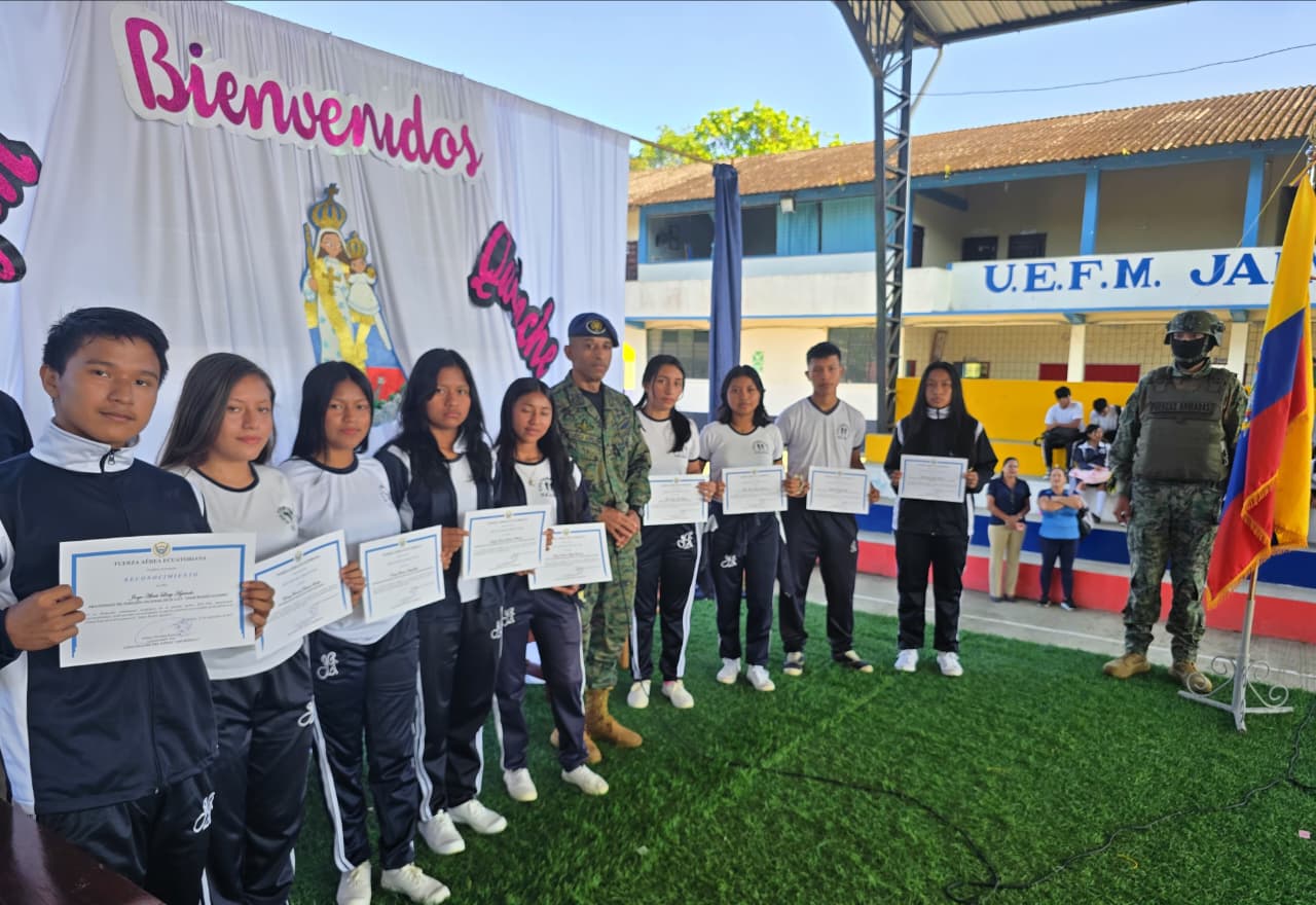 Cotundo, Napo. Con el propósito de fortalecer el civismo en la comunidad archidonense, la Fuerza Aérea Ecuatoriana (FAE) ofreció una conferencia en la Unidad Educativa Fiscomisional Jaime Roldós Aguilera de la parroquia Cotundo, con el tema “26 de Septiembre: Día de la Bandera Nacional”.