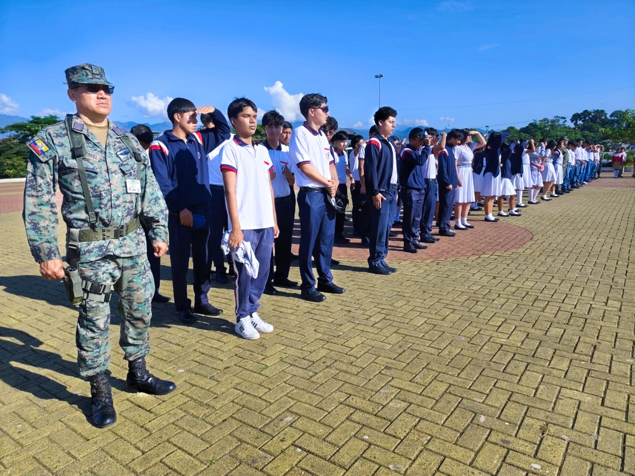 Con este acto, la Fuerza Aérea Ecuatoriana, a través del COS-2, contribuye a fortalecer el civismo y la formación académica de la juventud amazónica, reafirmando su compromiso con la educación en valores patrios.