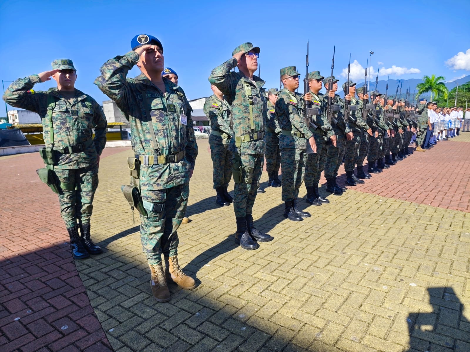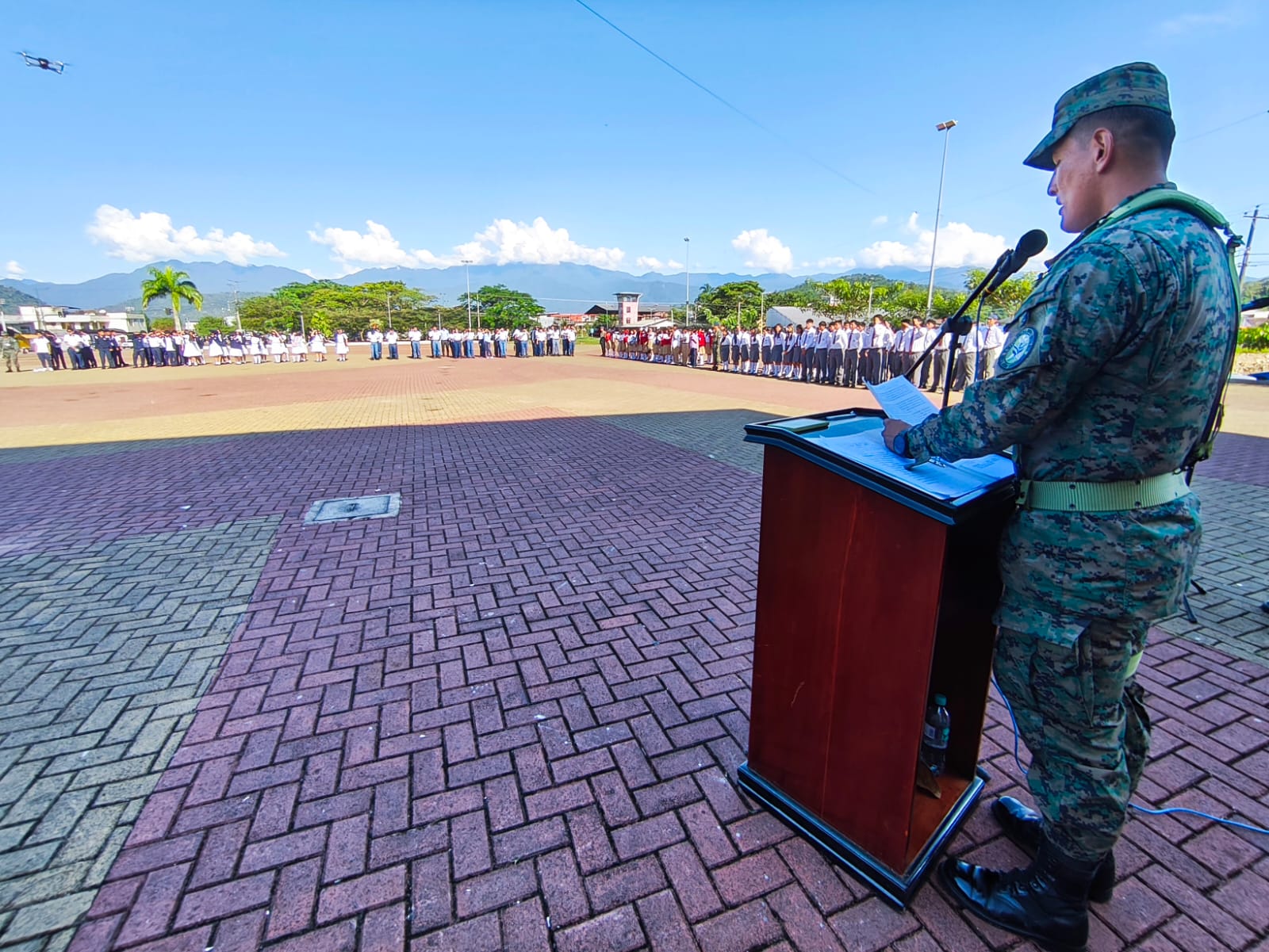 Durante la ceremonia, el subteniente André Moreno pronunció una oratoria alusiva a la fecha, mientras que dos estudiantes intervinieron con mensajes que exaltaron la importancia de la bandera como símbolo de unidad e identidad nacional.
