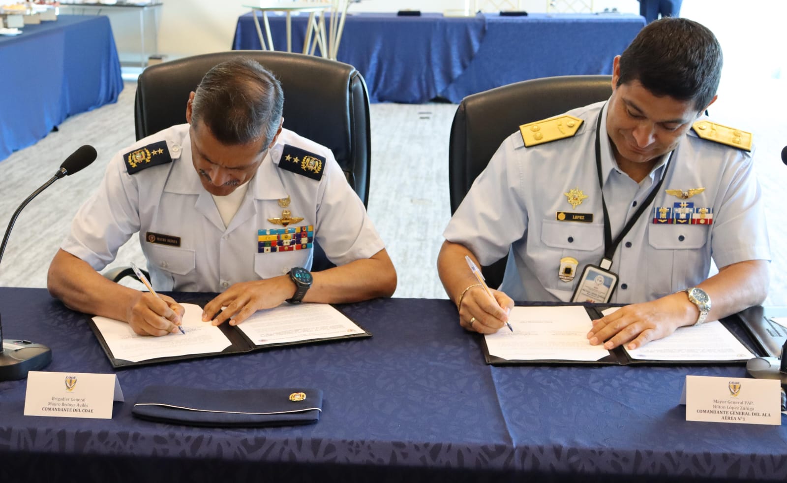 El Comando de Operaciones Aéreas y Espaciales (COAE) llevó a cabo la Vigésima Cuarta Reunión de Guarniciones y Comandos Operativos COAE–ALAR 1, encuentro presidido por el brigadier general Mauro Bedoya Avilés, comandante del COAE, y que contó con la participación de la delegación peruana encabezada por el mayor general Nilton López Zúñiga, comandante general del Ala Aérea Nro. 1 de la Fuerza Aérea del Perú.