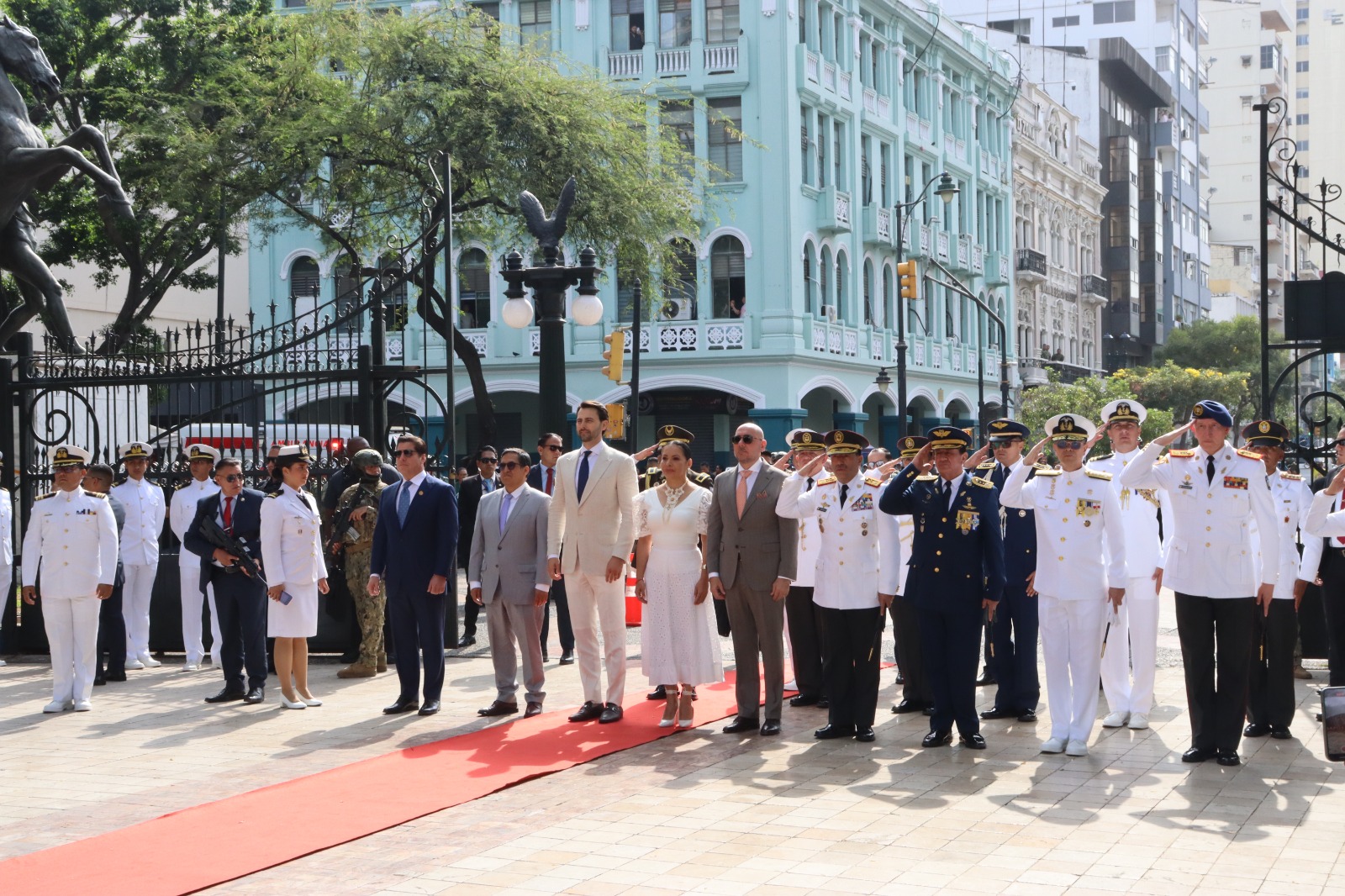 Durante la ceremonia, se efectuó la colocación de ofrendas florales como símbolo de respeto y gratitud a los hombres y mujeres que, con valentía y visión, proclamaron la independencia de Guayaquil, abriendo el camino hacia la libertad del Ecuador.