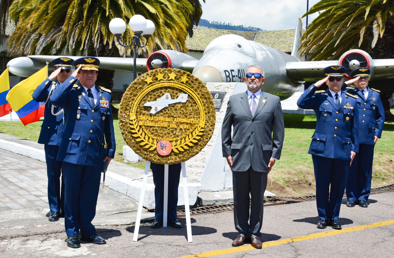 Quito | En un emotivo acto cargado de simbolismo y respeto, la Hermandad de Oficiales Canberristas del Ecuador realizó la colocación de una ofrenda floral en las instalaciones de la Base Aérea “Mariscal Sucre”, con motivo de la conmemoración del Centésimo Quinto Aniversario de Creación de la Aviación Nacional y del Día de la Fuerza Aérea Ecuatoriana (FAE).
