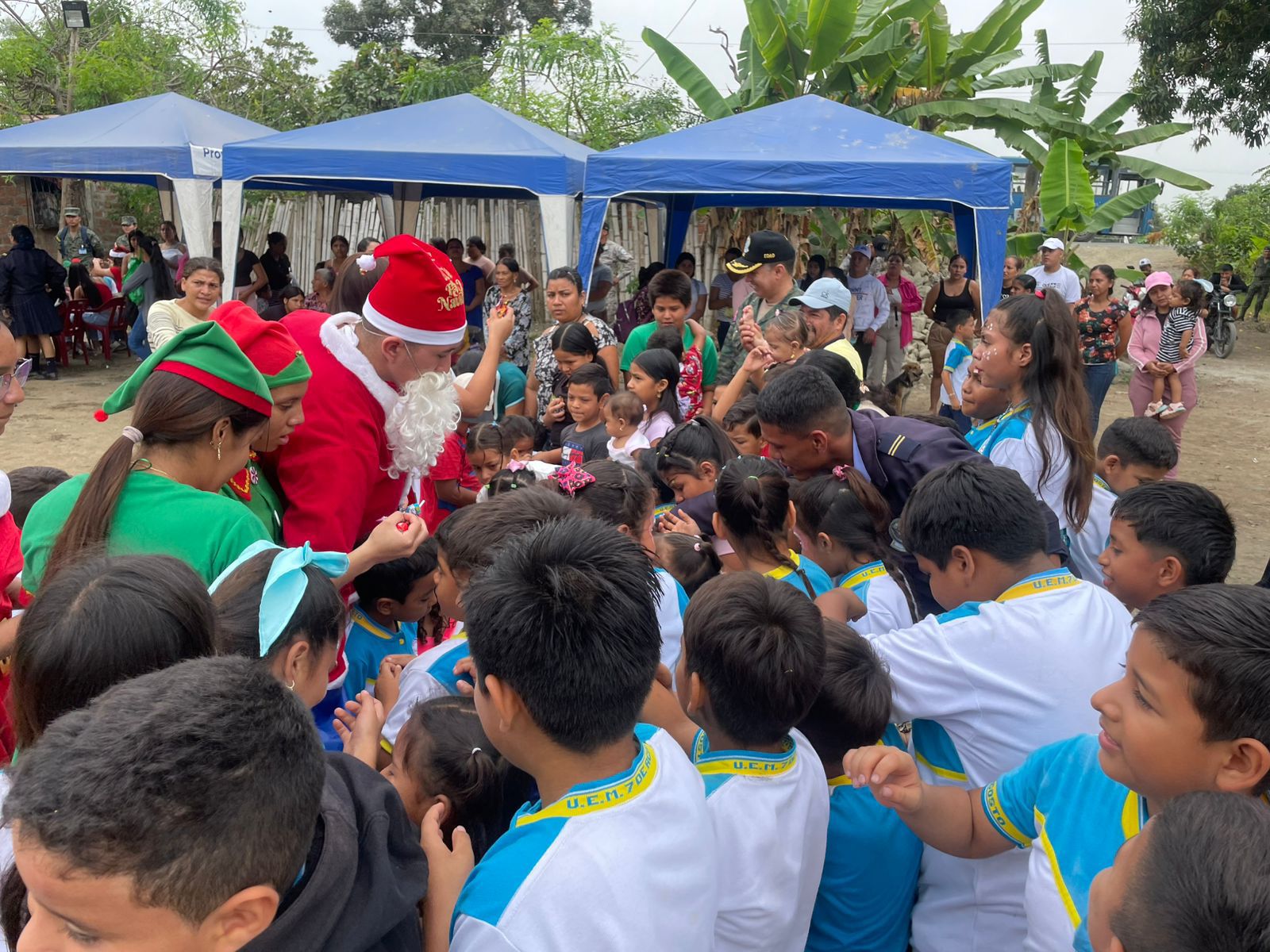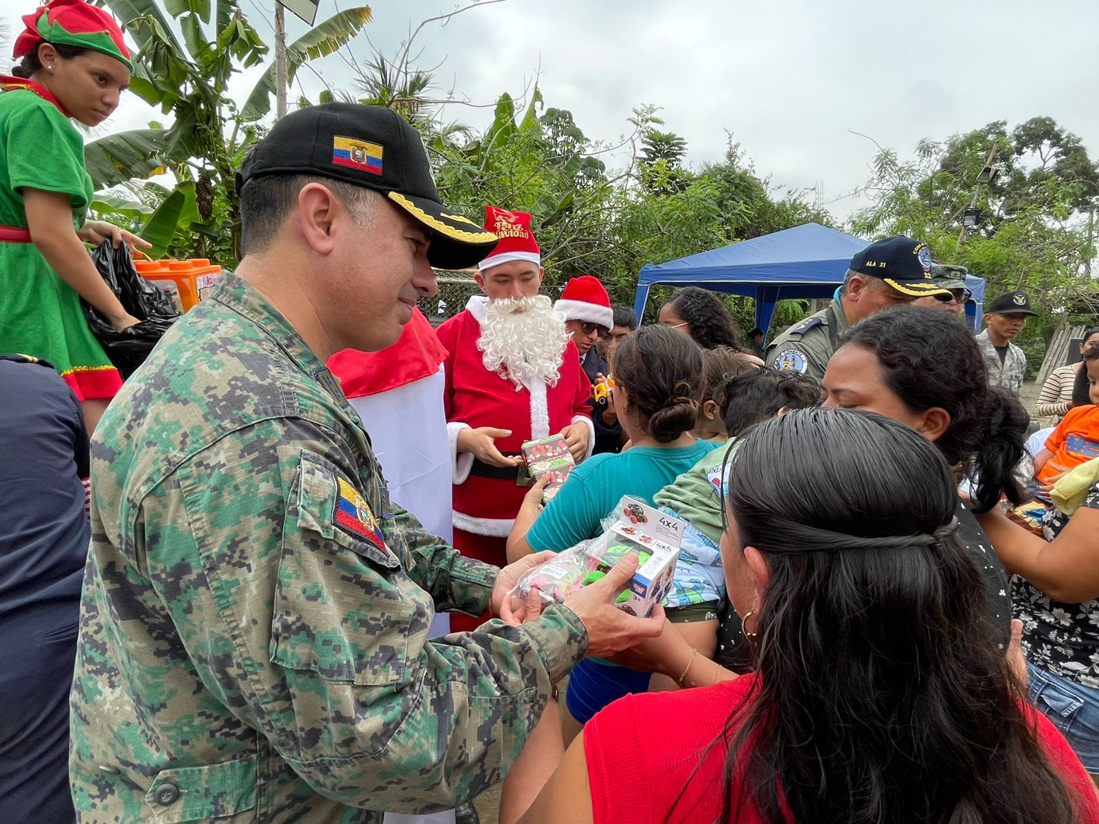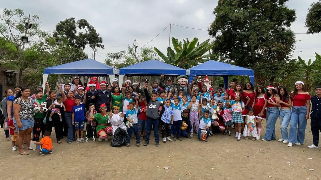 TAURA, GUAYAS – En una demostración de compromiso social y vocación de servicio, la Unidad Educativa de las Fuerzas Armadas FAE N.° 3, en una operación conjunta con el Ala de Combate N.° 21, desplegó una jornada de asistencia y agasajo navideño en la comuna Santa Rita. La iniciativa alcanzó a más de 130 niños y sus familias, consolidando el vínculo entre la institución militar y las comunidades de su zona de influencia.