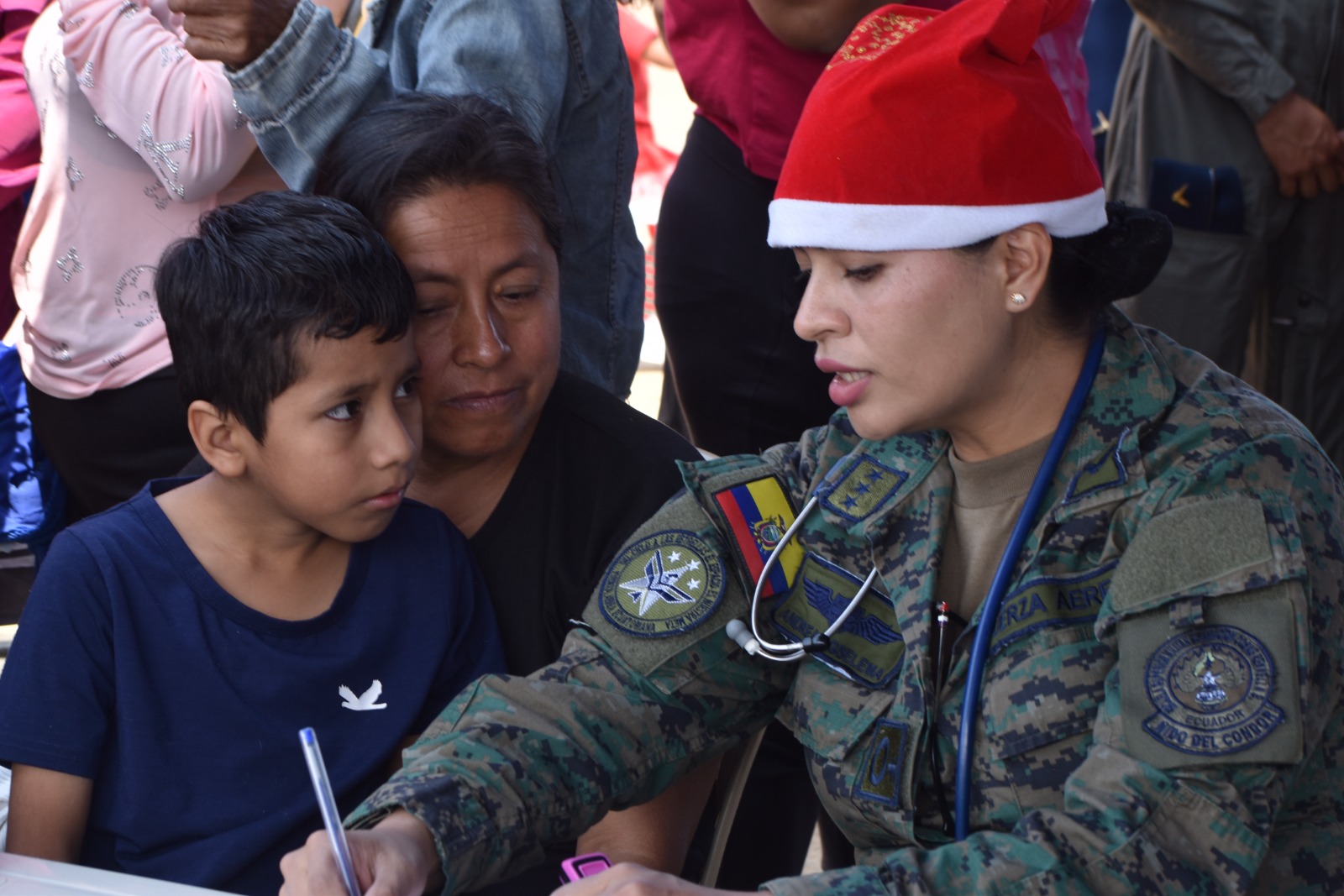 MUEY, SANTA ELENA – En un esfuerzo conjunto por fortalecer el bienestar de las comunidades más vulnerables de la provincia de Santa Elena, la Escuela Superior Militar de Aviación “Cosme Rennella Barbatto” (ESMA) llevó a cabo una exitosa jornada de vinculación con la sociedad en el sector Lenin Moreno de la parroquia Muey.