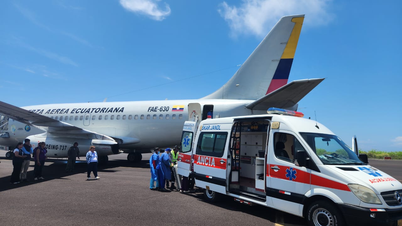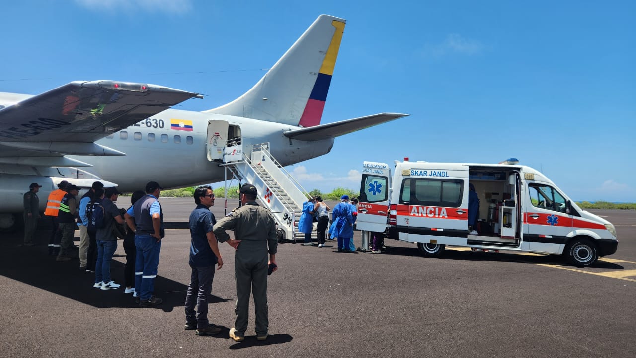 #Galápagos | La Fuerza Aérea Ecuatoriana, a través de su aeronave Boeing 737-200, cumplió una misión de evacuación aeromédica en atención a la solicitud del Ministerio de Salud Pública.