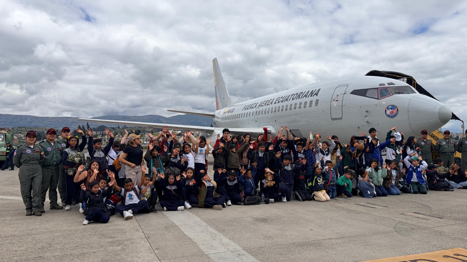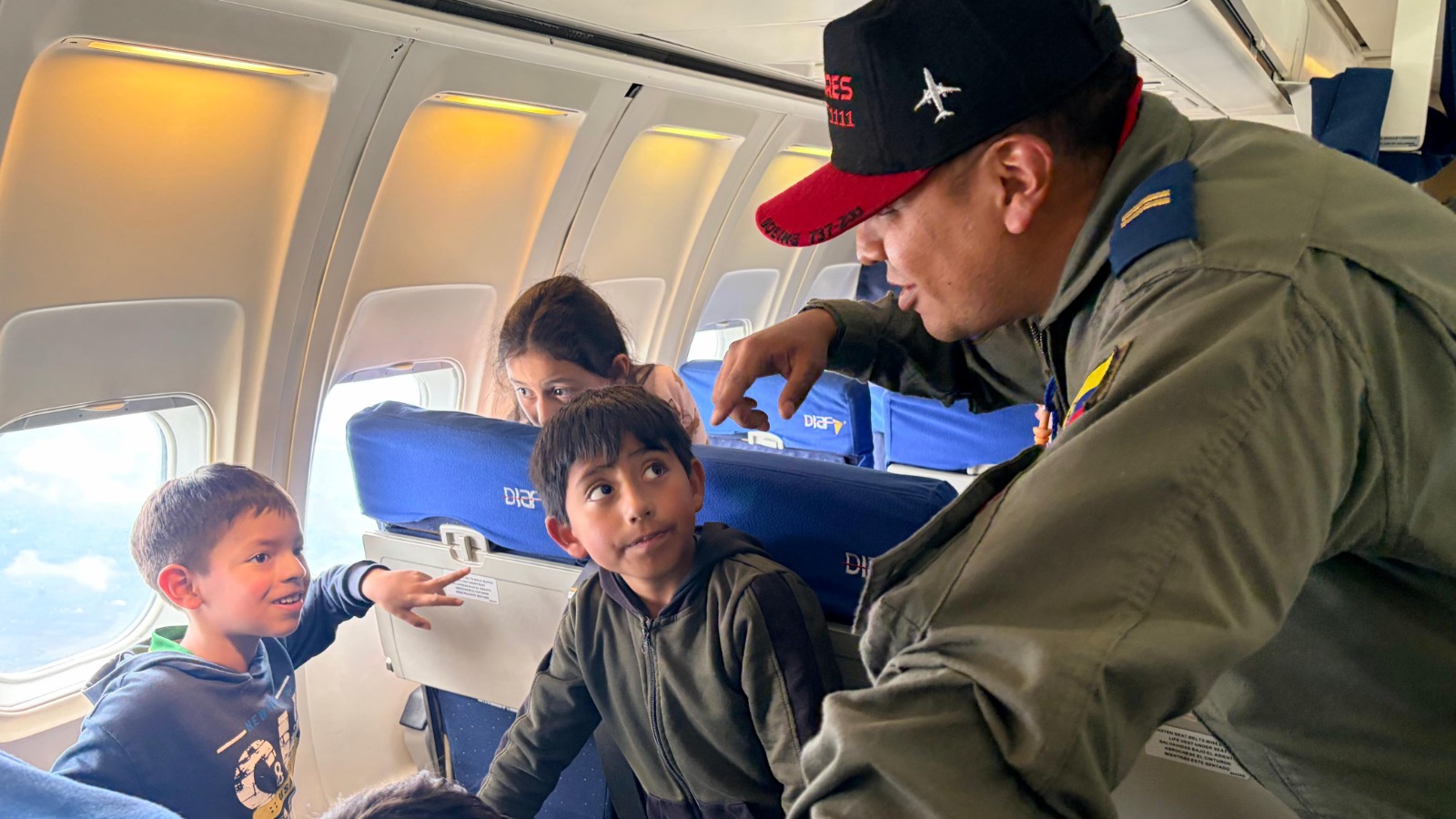 Durante esta jornada, los menores tuvieron la oportunidad de cumplir el sueño de volar por primera vez a bordo de la aeronave Boeing 737-200, experimentando la emoción de surcar los cielos y conocer de cerca el trabajo que desarrolla el personal militar en cumplimiento de la misión institucional. Esta actividad permitió fortalecer los lazos de integración entre la institución y la comunidad, promoviendo valores de confianza, respeto y cercanía con la ciudadanía.
