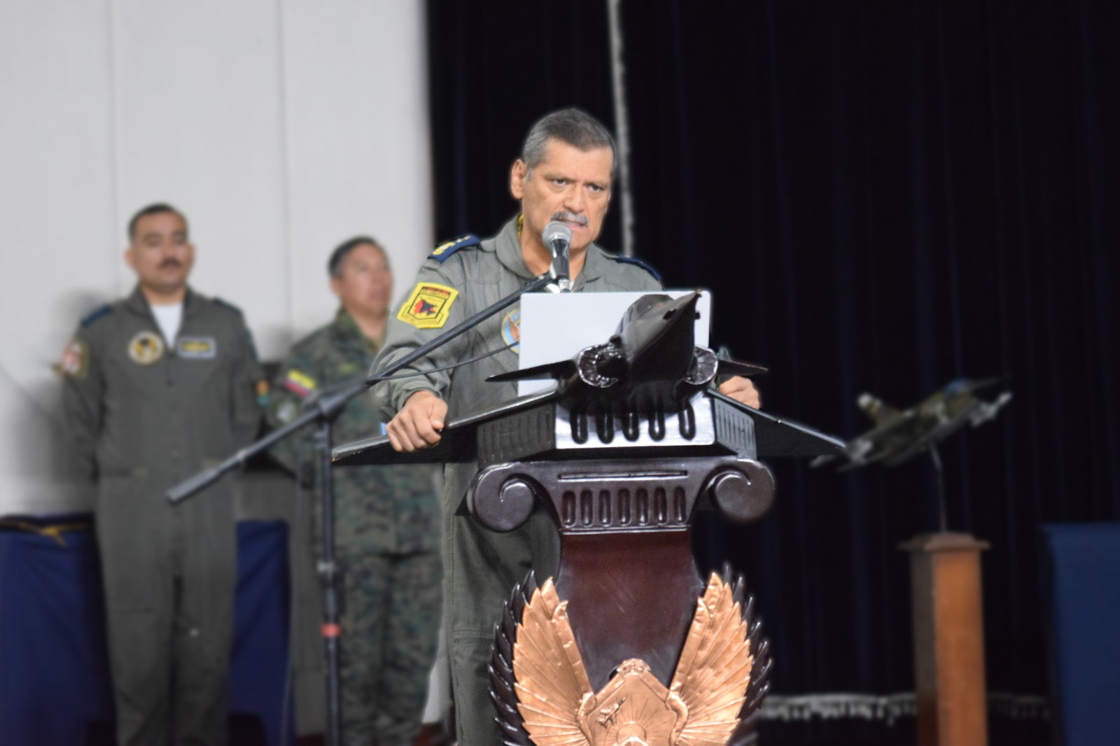 En las instalaciones del auditorio externo de la Academia de Guerra Aérea (AGA), centro de pensamiento estratégico de la Fuerza Aérea Ecuatoriana (FAE), se llevó a cabo una conferencia magistral titulada “Planificación en el nivel estratégico y operacional de las OMAI”. La ponencia fue impartida por el señor Brigadier General Mauro Bedoya Avilés, Comandante del Comando de Operaciones Aéreas y Espaciales (COAE), y estuvo dirigida a los oficiales que se forman para el liderazgo de las futuras misiones de la institución.