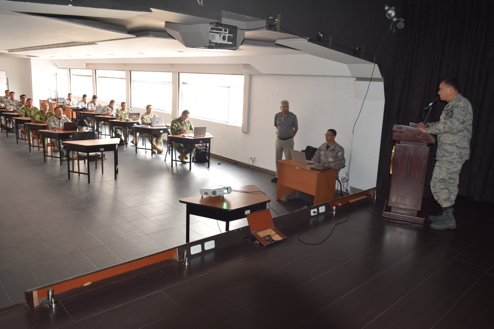 En el auditorio de la Academia de Guerra Aérea (AGA), se desarrolla una jornada de alta especialización técnica sobre los equipos Light Management System (LMS). Esta instrucción, impartida por expertos extranjeros con amplia trayectoria en el área, busca estandarizar y modernizar los conocimientos del personal militar de la Fuerza Terrestre, Armada del Ecuador y Fuerza Aérea.