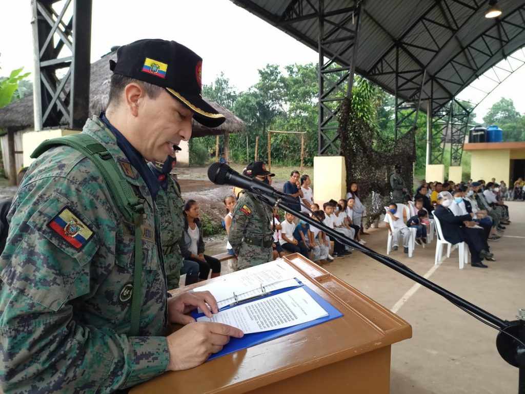 La Fuerza Aérea Ecuatoriana realiza la campaña “Alas para la Educación” La Fuerza Aérea Ecuatoriana realizó la campaña “Alas para la Educación” en el Centro Educativo Comunitario Intercultural Bilingüe “Ciudad de Salinas”. En el establecimiento se desarrolló una ceremonia militar en conmemoración al XXVII Aniversario de la Victoria Aérea del Cenepa y Día de la Aviación de Combate, donde además se disertó una conferencia alusiva a esta hazaña, con la finalidad de fomentar el patriotismo y cultura aeronáutica en los niños de la comunidad Puyu Punku. Dentro de contexto también se entregó material didáctico y refrigerio a los niños que asistieron. De esta forma las damas y caballeros del aire ratifican su compromiso con la educación de los niños de la provincia de Sucumbíos.