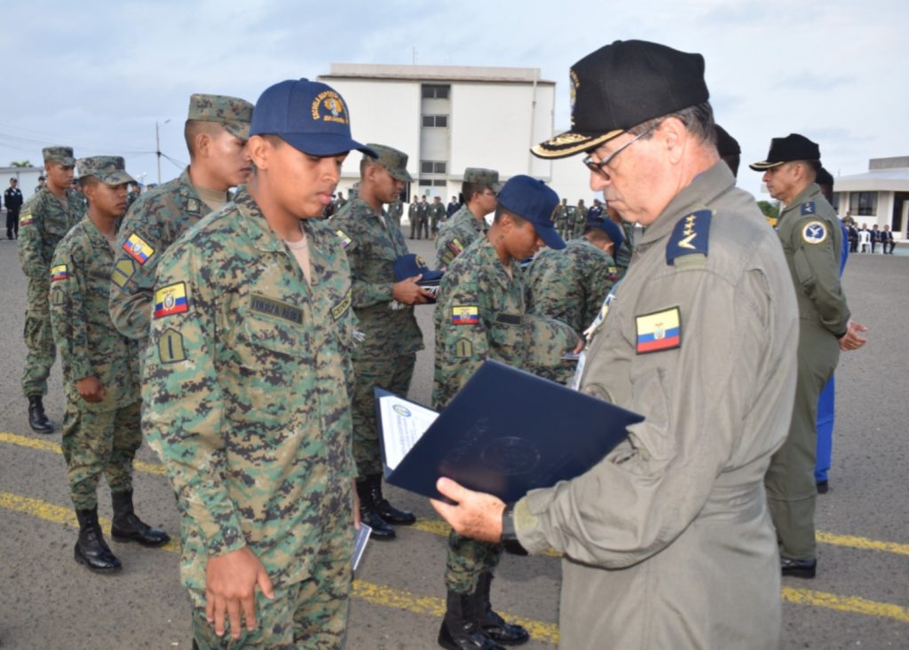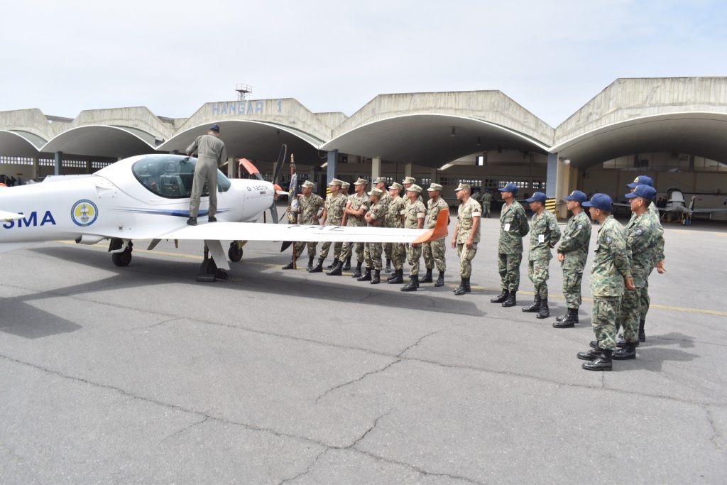 En las instalaciones de la Escuela Superior Militar de Aviación “Cosme Rennella B.” en Salinas, se recibió la visita de los conscriptos de la Base Naval de Salinas y conscriptos de la ESMA, con el propósito de conocer las actividades que desarrolla esta escuela de formación. Durante la jornada, se realizó una presentación de las aeronaves de instrucción, destacando los equipos T-34, DA-20 y G120-TP, así como una exhibición de la estación de producción y mantenimiento de sistemas aeronáuticos. Este recorrido permitió a los visitantes conocer de cerca las aeronaves en las que se forman los cadetes de la FAE, reforzando el compromiso con la excelencia en la preparación de los futuros aviadores militares del país.
