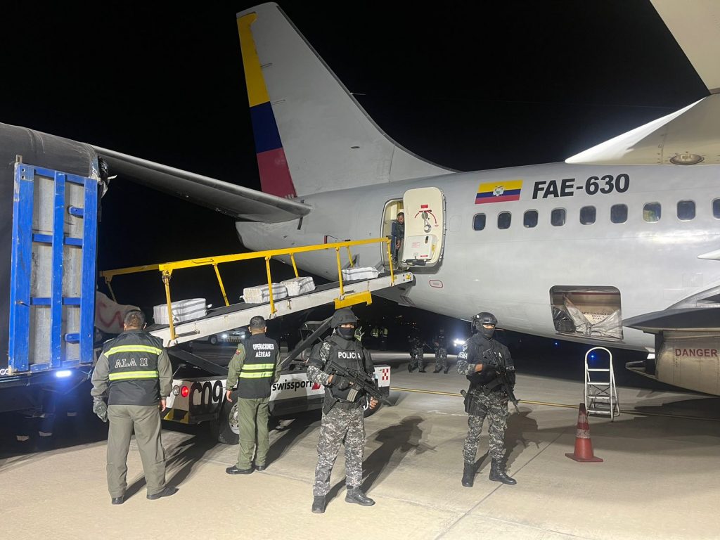 La Fuerza Aérea Ecuatoriana, mediante la aeronave FAE 630, transportó más de 7 toneladas de sustancias sujetas a fiscalización desde las islas Galápagos hasta Quito, en un operativo coordinado con las autoridades competentes. En una operación crucial para el cumplimiento de la ley, la Fuerza Aérea Ecuatoriana (FAE), a través de su aeronave FAE 630, trasladó desde las islas Galápagos hacia la ciudad de Quito un cargamento de más de 7 toneladas de sustancias sujetas a fiscalización. Estas acciones responden a los controles exhaustivos realizados en el archipiélago, uno de los puntos clave para el resguardo de la seguridad y la soberanía nacional. Una vez que el cargamento llegó a la capital, las autoridades competentes se encargaron de custodiar y trasladar las sustancias siguiendo los protocolos establecidos por la Ley, garantizando que se cumplan los procedimientos necesarios para el manejo y disposición de este tipo de materiales. Este tipo de operativos refuerzan el compromiso de la Fuerza Aérea Ecuatoriana y las instituciones del Estado en combatir actividades ilícitas y en mantener el control de materiales peligrosos, asegurando la paz y la seguridad de los ciudadanos ecuatorianos.