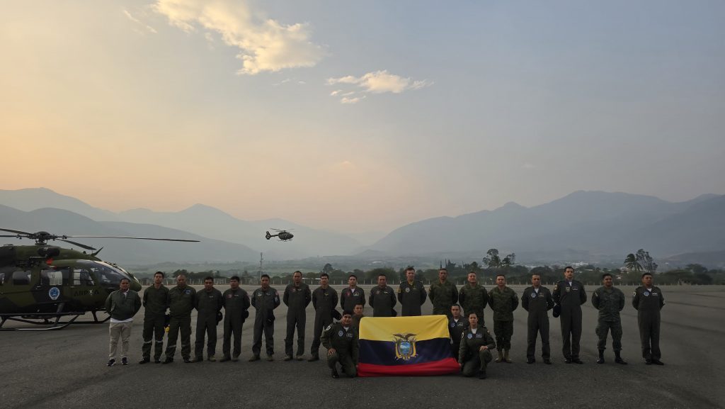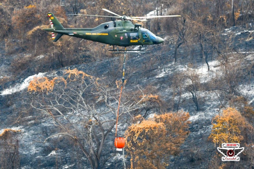 El Ala de Combate Nro. 22, en colaboración con el Cuerpo de Bomberos, empleó un helicóptero AW 119 Ke para controlar un incendio forestal en el sector del Chorrillo, en la Vía a Daule. El Ala de Combate Nro. 22, en estrecha coordinación con el Cuerpo de Bomberos, desplegó un helicóptero AW 119 Ke equipado con un sistema bumby bucket para abordar un incendio forestal en el kilómetro 22.5 de la Vía a Daule, específicamente en el sector del Chorrillo. Durante la emergencia, pilotos y técnicos de la Fuerza Aérea Ecuatoriana trabajaron de manera efectiva desde la aeronave, logrando controlar el incendio y evitar su propagación. Gracias a las operaciones aéreas y al uso del bumby bucket, se logró mitigar la emergencia y proteger la zona afectada. Este operativo resalta el compromiso de las Fuerzas Armadas con la protección del medio ambiente y la seguridad de las comunidades, demostrando la capacidad de respuesta ante situaciones de emergencia con eficacia y coordinación.